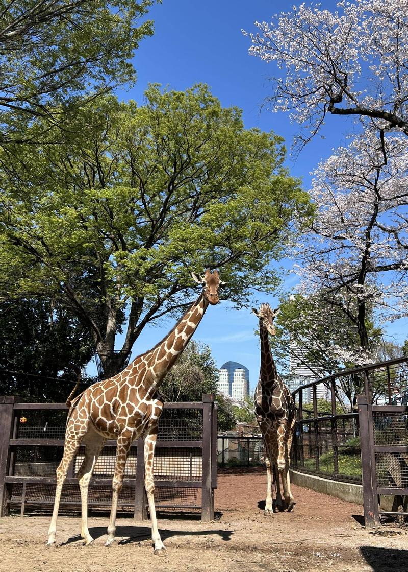 それでは、今年の満開の桜とキリンたちをお届けします!!