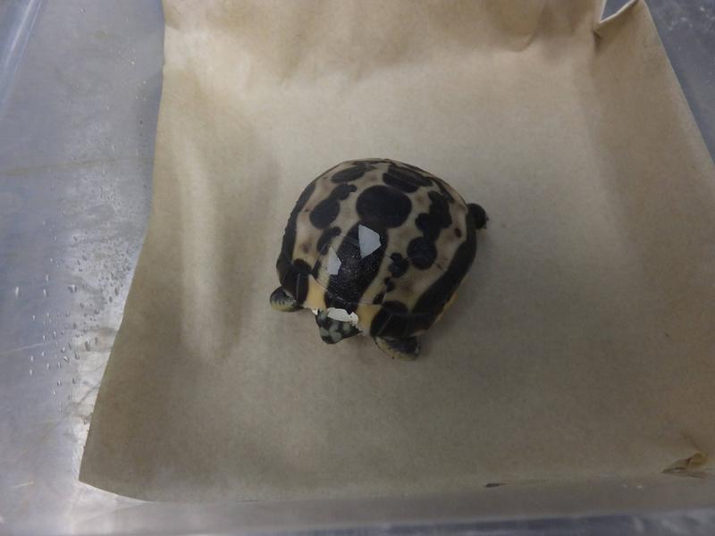 孵化した子ガメには、雛や稚魚にも見られるヨークサックと呼ばれる、栄養が詰まった袋がお腹から出ていますので、孵化後数日は何も食べなくても成長することができます。しかし今回孵化した子ガメにはヨークサックが見当たりません。