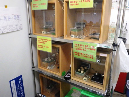 そんなわけで、上段2つと下段の1つ計3つのキバラクモノスガメ、中段にヘサキとホウシャの卵。マダガスカルトータス人工孵卵そろい踏みであります。3月産卵のヘサキリクガメの卵は残念ながら全て無精卵でしたが、今度はうまくいくといいなと頻繁に検卵をしている今日この頃です。
