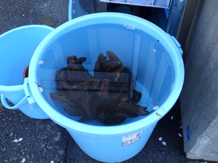 拾ってきた流木は、良く洗って水につけてアクを抜きます。