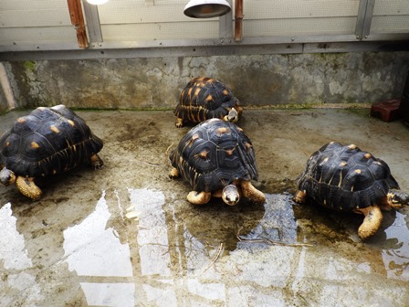 さて、爬虫類館のマダガスカル産リクガメたちにとって、3月は雨季の始まりであります。3か月間水まきをせず、カラカラに乾いた彼らの飼育施設に、暖かい日を選んで少しずつ水をまいていきます。こちらはホウシャガメ。