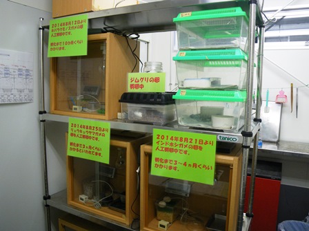 こんな感じでキバラクモノスガメ、リュウキュウヤマガメ、インドホシガメの卵を温めております。ジムグリの卵も先日3個すべてが孵化し、子ヘビをご覧いただけます。それはまた次回のブログでご紹介ということで・・・。