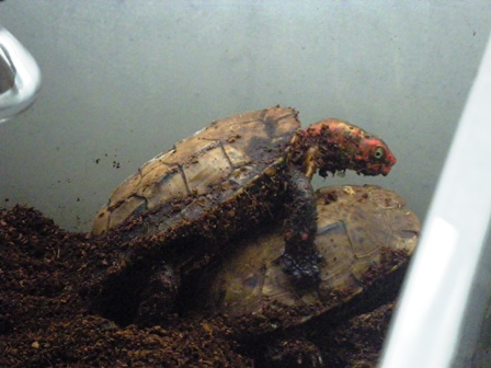 実はリュウキュウヤマガメのオスは昨年の10月に亡くなっております。その前、5月ごろには交尾行動を何度か確認しておりました。カメの仲間はメスが体内に精子を貯留しておけると聞いております。ある種では交尾後数年間受精卵を産んだ例があるそうです。そんなわけでリュウキュウヤマガメにも期待していたところでした。昨年は仮設爬虫類館で産卵しなかったので余計うれしいです。