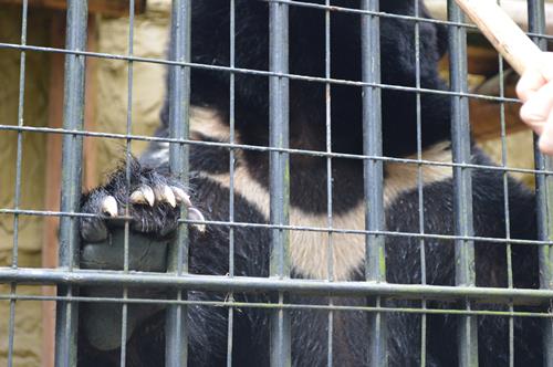 ターゲット棒を高い場所に差し出せば、クマたちは鼻先を付けるために立ち上がった姿勢になります。