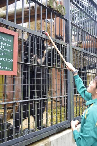 飼育係がターゲットをクマたちの前に差し出すと・・・