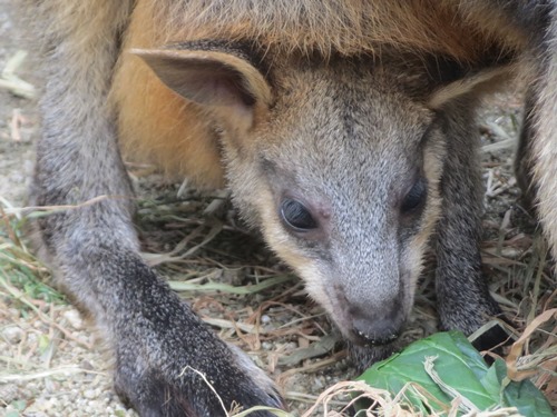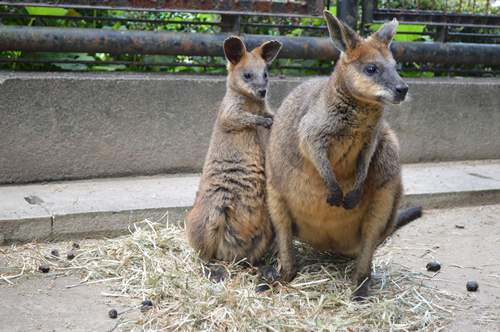 続いてこちら、昨年生まれたオグロワラビーのヤイチ君。