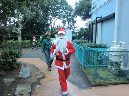 ふと視線をあげると、園長サンタが園路からこちらを覗いています。