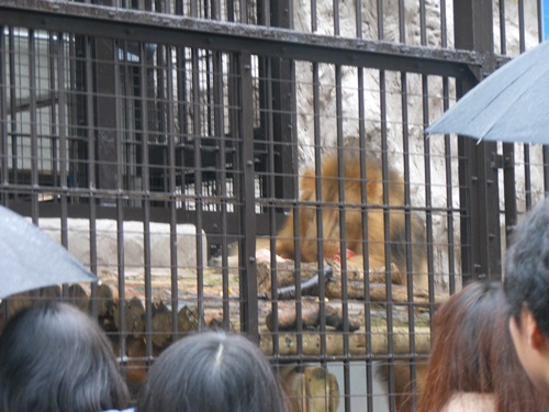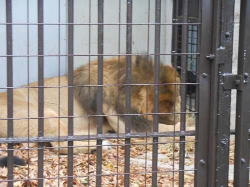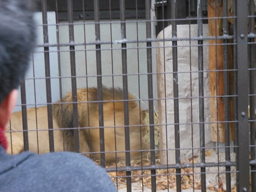 今年から野毛山動物園の一員になったインドライオンのラージャー(オス)へは牛の大腿骨のプレゼントです。