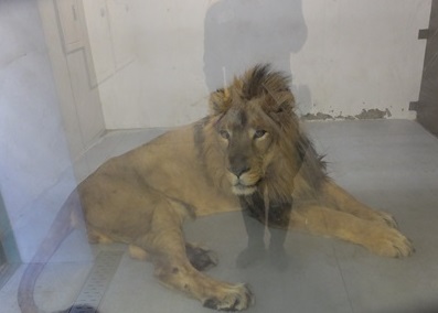 実は、ライオンとトラのガラス越しに見える部屋は床暖房完備なので、ガラス越しとはいえ迫力ある猛獣の姿を見ることができます。(カメラの調子が悪く変な影が入っていますがお気になさらず・・・)