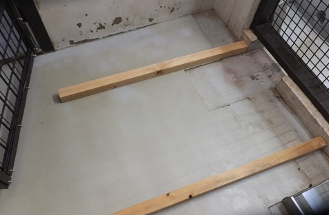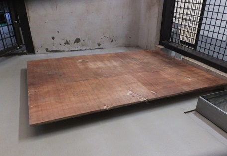 体重測定に向けての馴致は、まずこのベニヤ板に乗ることから覚えてもらいます。