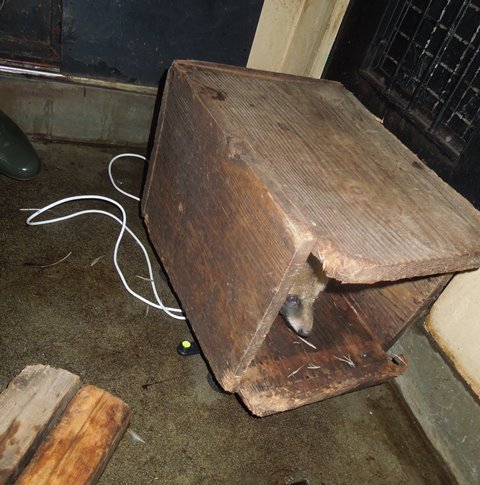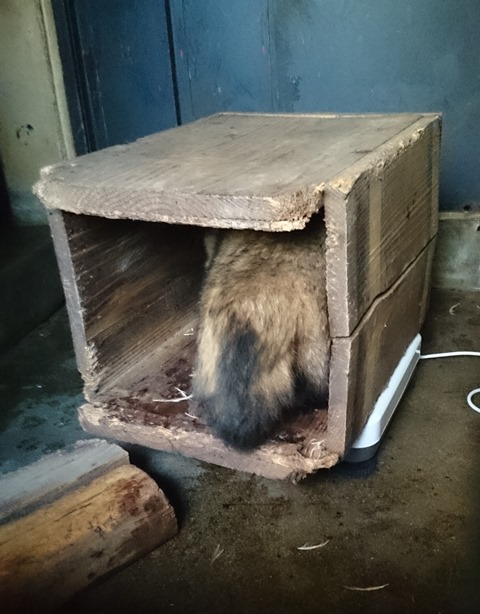 担当者が寝室に入ると威嚇するか、手近な巣箱に隠れてしまいます。