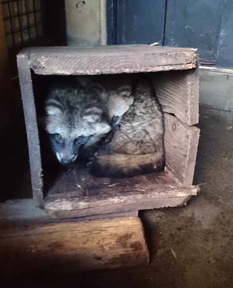 それはホンドテンのメス、テンコとホンドタヌキ3頭です。