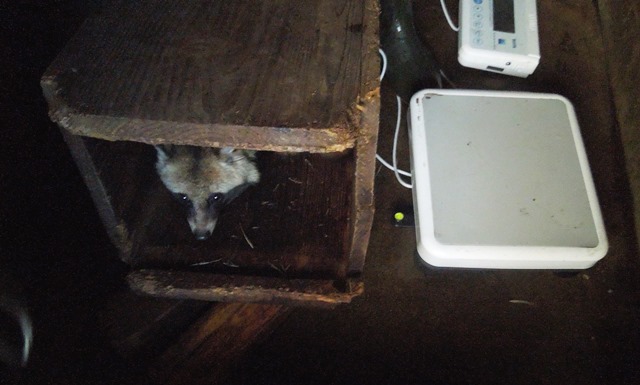 そもそも警戒心が強いタヌキ。体重計はおろか、その上のエサすらも食べませんでした。