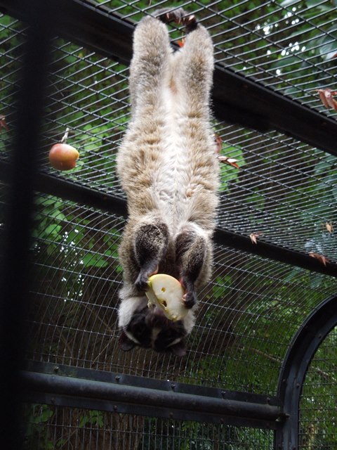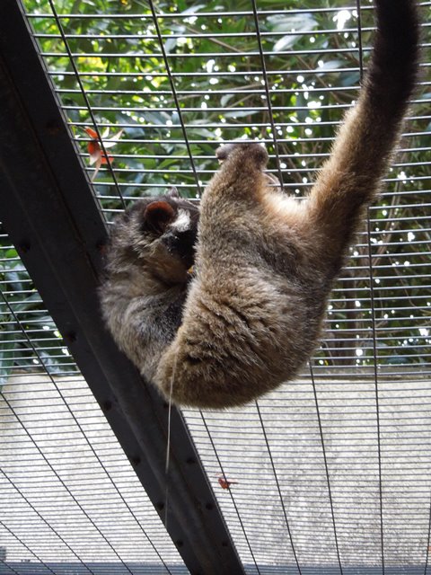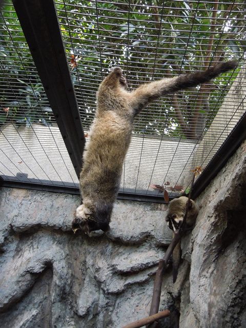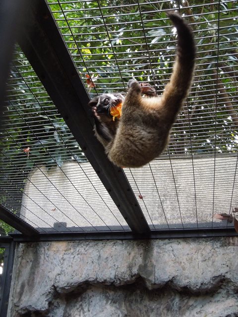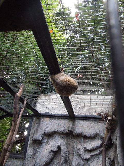 そんな事が起こっている獣舎の表側では、天井に毛玉がぶら下がっていました。
