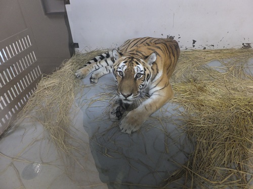 その並びにいるアムールトラ(メイメイ:メス)は寝転がっていますが、