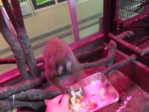その後、ヨザル(ブラッド:オス)にエサをあげ・・・こちらもヨザルが猛スピードで動くので写真がぶれぶれです。