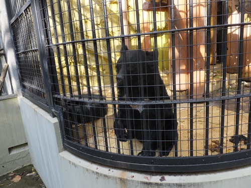 最後にクマ舎へ行くとツキノワグマ(コマチ:メス)はすでにお待ちの様子です。