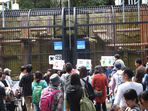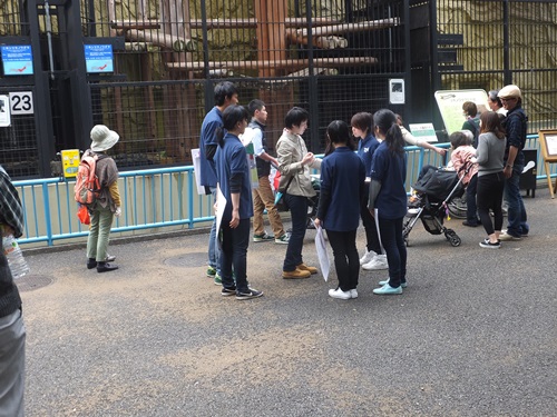 さる10/26(日)にツキノワグマで連携授業を行っていた専門学校の学生によるクマについてのガイドを行いました。今回のガイドを行う前から数度、野毛山動物園にきては、お客様にクマについての印象を調査したりしておりました。それを基に2グループが各テーマに沿ったガイド内容を作成してきたようです。