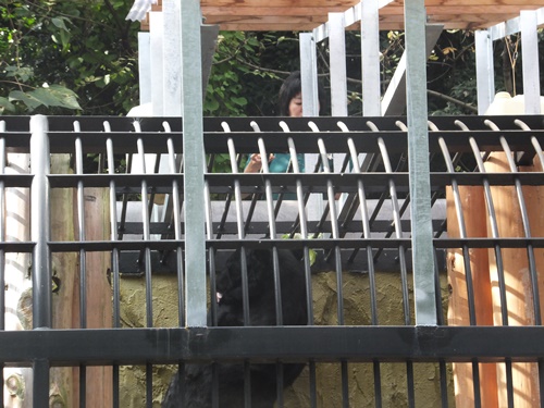 以前、ツキノワグマを担当していた野毛山動物園広報担当が2年ぶりにクマに餌を与えています。なぜかこちらも学生同様に緊張しながらクマに餌を与えています。