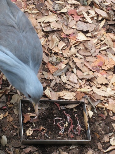 そこで、ミミズと一緒に細切りにしたハツを土の上に並べてみました。