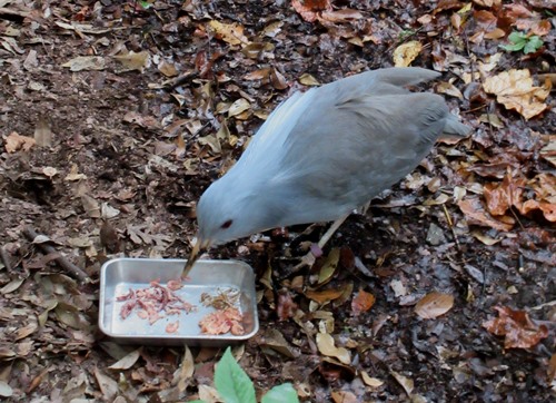 野毛山動物園では、カグーのエサにハツやスナギモの細切りとオキアミ、コオロギを与えています。