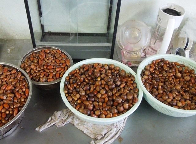 こちらはほんの一部ですが、調理後に熱取り中のドングリです。