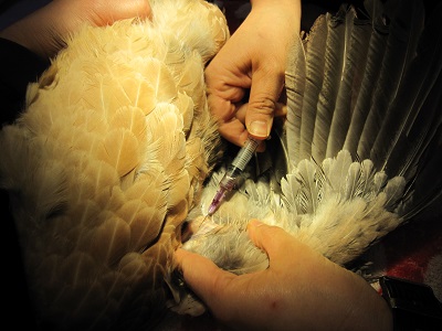 ワニも手足は硬い鎧のようなウロコに覆われてるので、どこに血管があるのか全くわかりません。ヘビもワニもさらにはトカゲも尾の正中に沿って血管が走っているので、とにかく尾椎を目指して針を刺し、徐々に探りながらシリンジを引けば血液が入ってくるのです。カメでも体が大きければ尾からとれます。