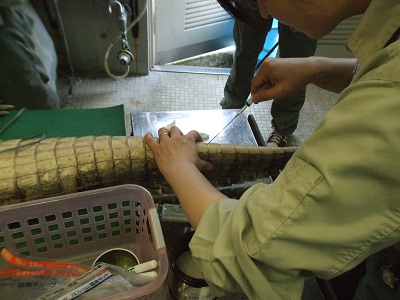 現在野毛山動物園では、これらの動物のハズバンダリートレーニングを行っていて、それぞれ尾と首から採血できるようになりました。