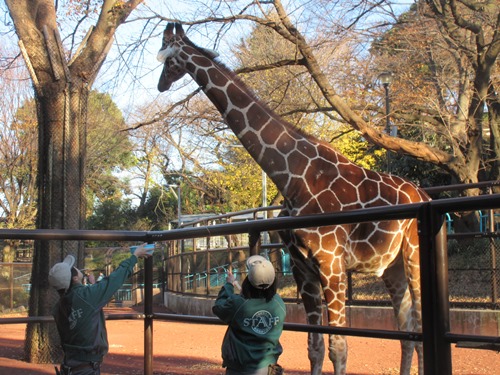担当者のいるシマウマ舎の屋上に顔を出して、何してるの~?アピールをしていた「そら」。