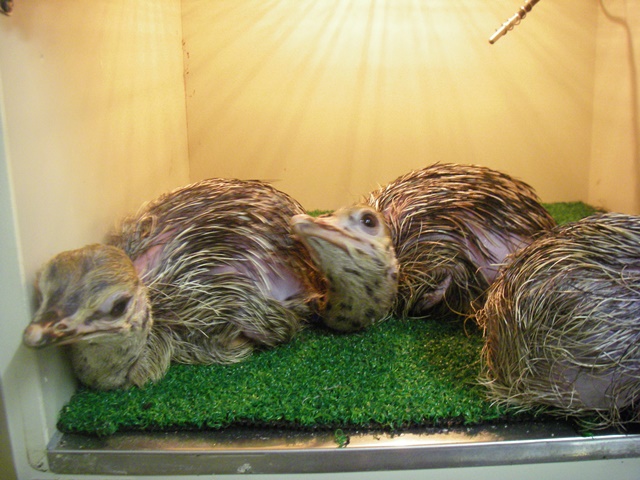 野生下でも飼育下でもダチョウの卵の自然孵化率はとても低く、動物園で飼育されているダチョウの場合、人工孵化(孵卵器で温めて孵化)させるのが一般的です。