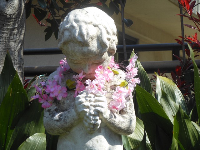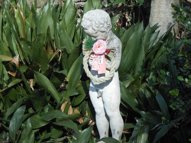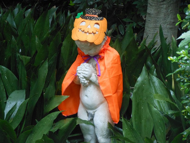 園路から見て右側にいつも小便小僧がいるのですが、ハロウィン仕様にしてみました。