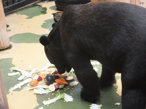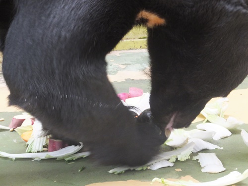 さて、こちらのツキノワグマのサンペイ(オス)は一体全体どうしてこのような姿をしているのでしょうか?