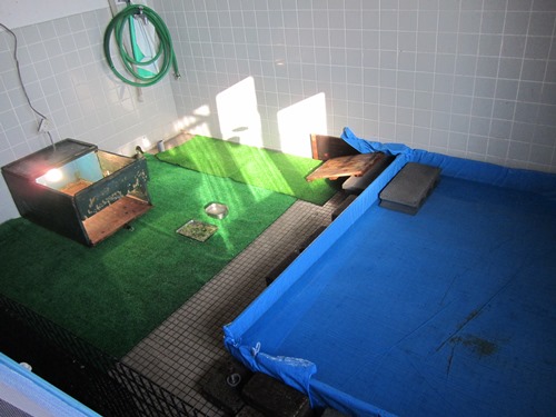 脚が曲がってしまわないように、脂肪の付きすぎや高たんぱくにならないようなエサを与え、充分な運動量を確保するために、プールを作って泳がせたりもしていますが、なかなか親が育てるようにはいかないのが現実です。