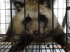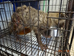 体全体の皮膚にかさぶたができています。タヌキのふわふわの毛が、ごわごわになっています。