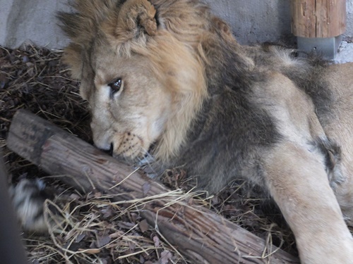 寝こみを写したがりの野毛山動物園広報担当に激写され、あらぬ表情をしています(※体調が悪いわけではありません)。