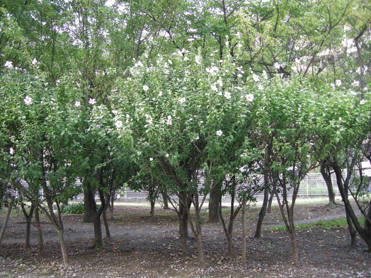 中国原産で花は白、紫、赤などの美しい花をつけます。お隣韓国の国花でもあります。花が美しく、樹勢が強く丈夫な花木であるため、庭木として良く利用されています。樹高は10m以上にもなる高木でもあります。