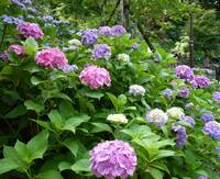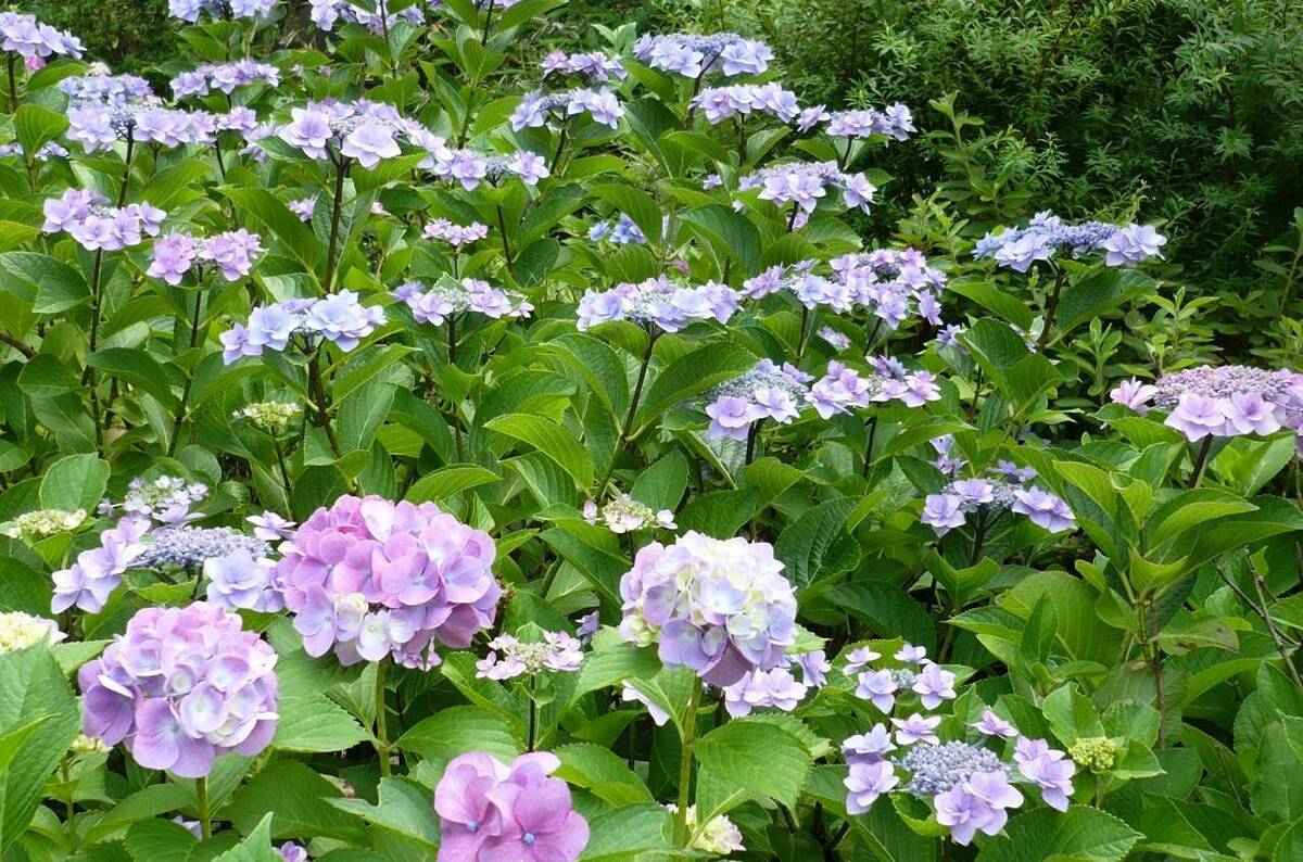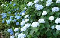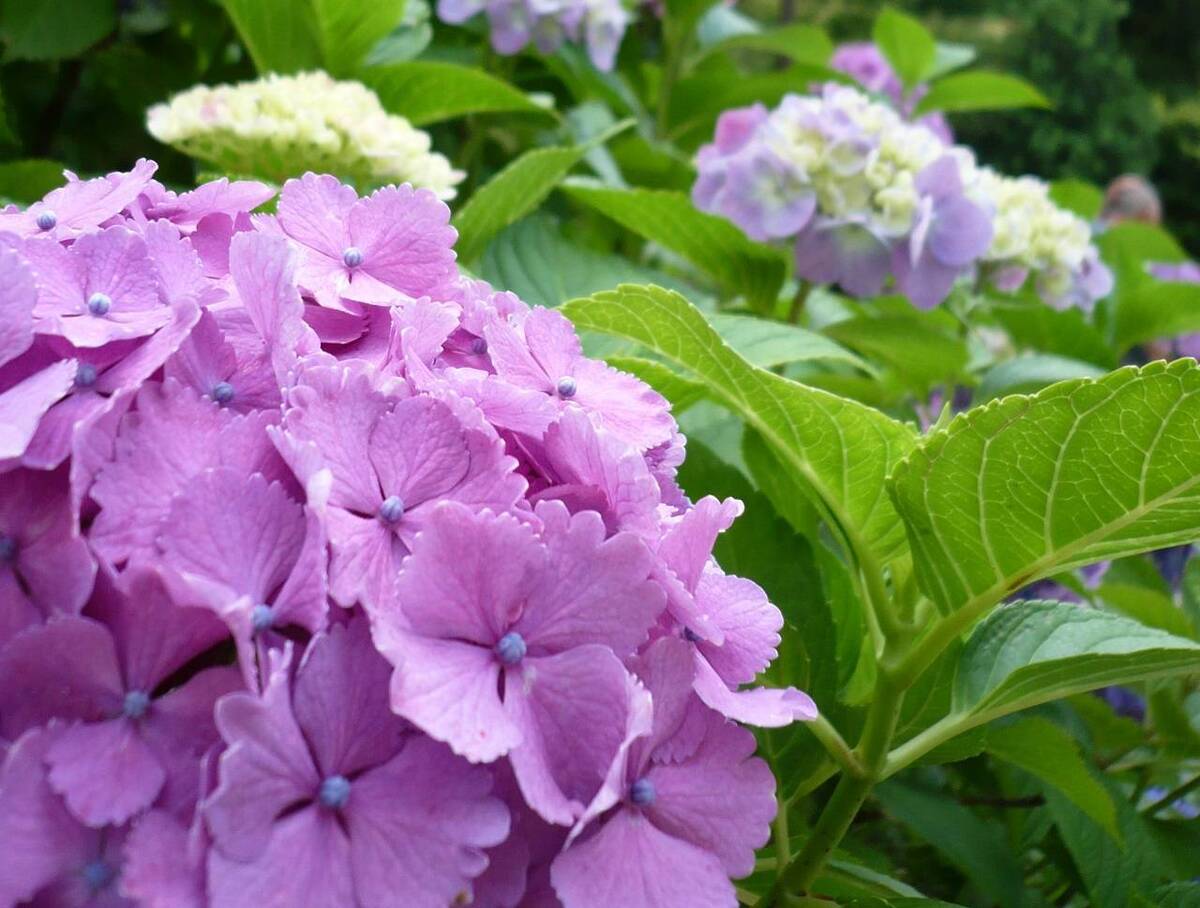 ご存じ梅雨の代表花で日本の各所に名所があります。セイヨウアジサイは日本の自生種のガクアジサイを品種改良したものです。花といわれている部分は装飾花(飾り花)です。