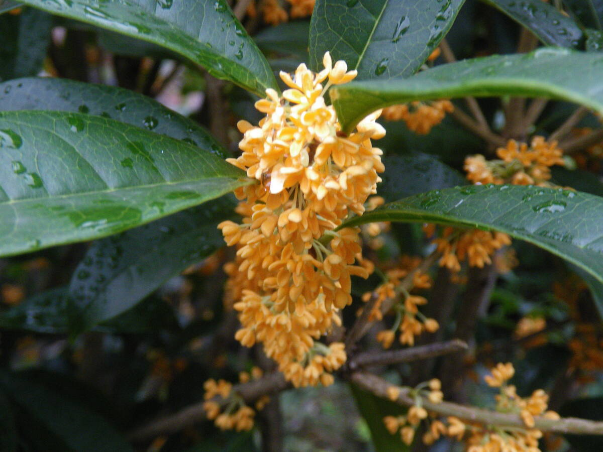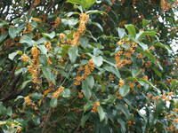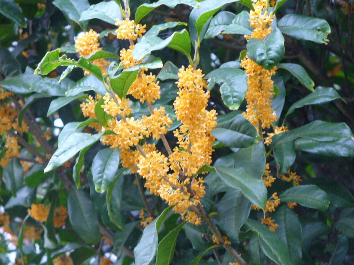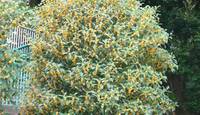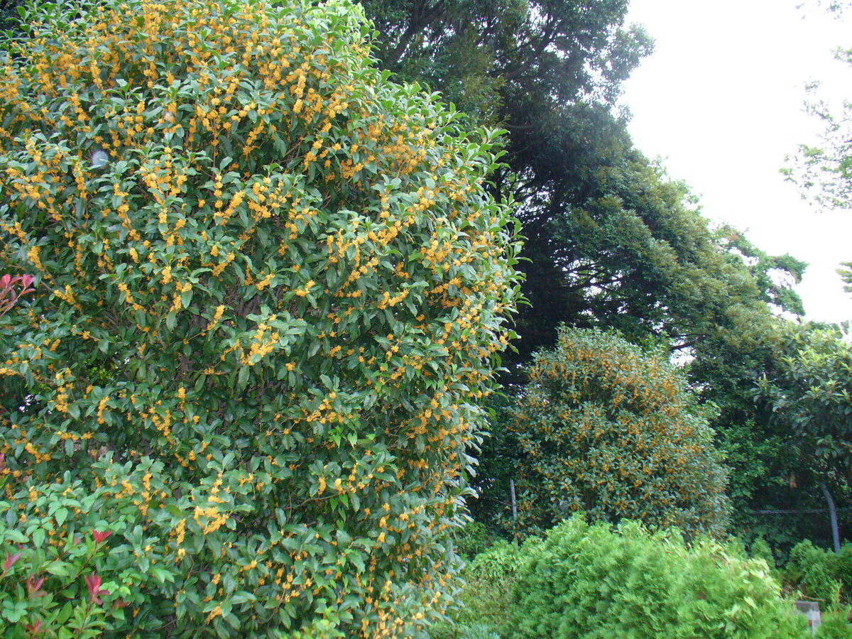 9月終わりか10月初めにとても甘い香りをまわりに漂わせます。わずか1~2週間の開花ですが、その香りはとてもインパクトがあります。散った花のじゅうたんもきれいです。
