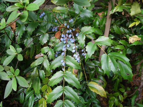 葉がヒイラギに似ていて、枝振りがナンテンに似ているので、あわせてヒイラギナンテンという名前になりました。早春に黄色い花を房状につけます。