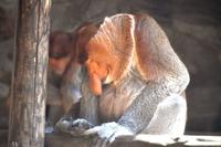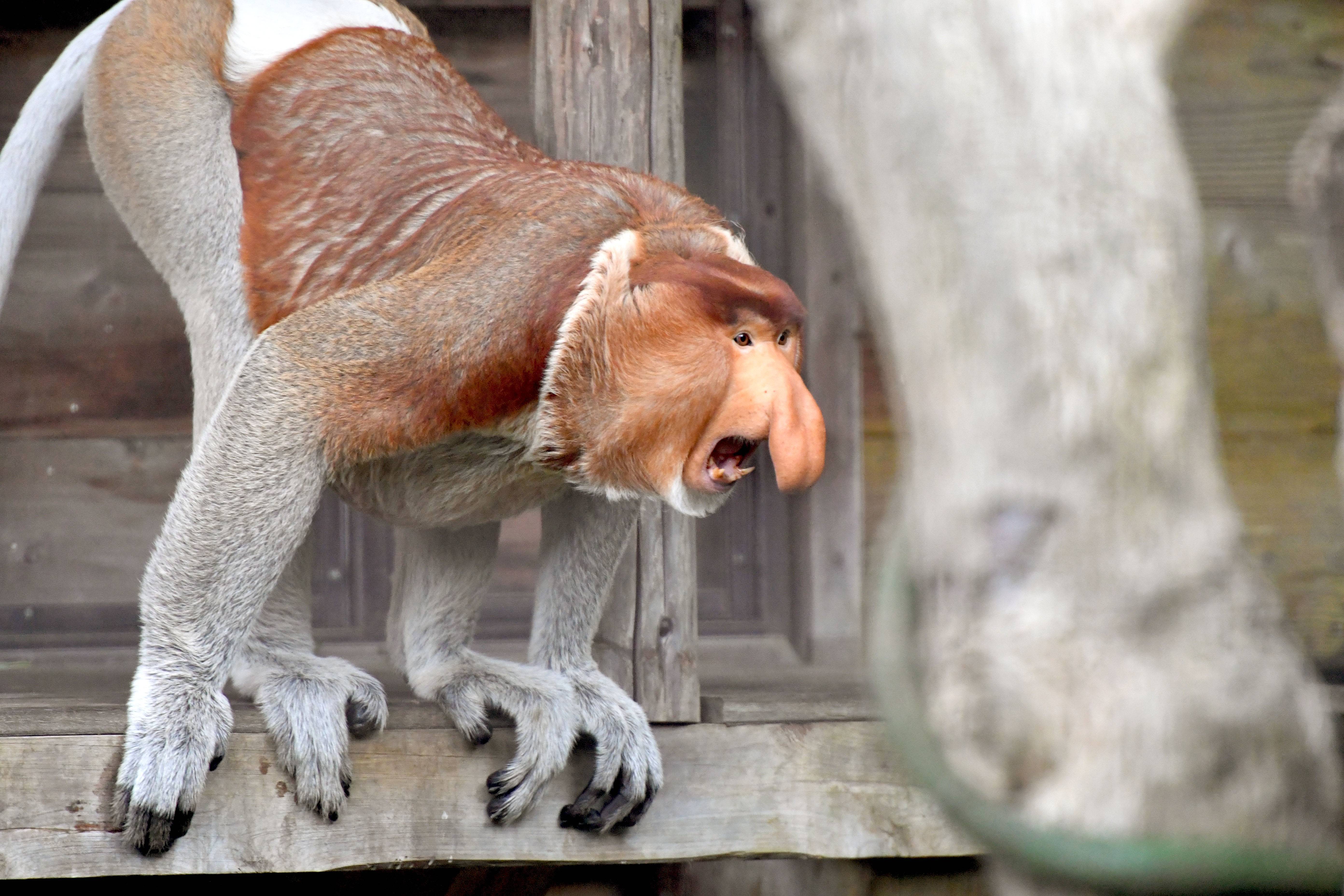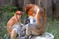 インドネシア、マレーシアに属するボルネオ島のみに生息するオナガザルの仲間。主な生息地は海沿いのマングローブ林や川沿いの湿地林で、一部は川沿いにかなりの上流部(標高245m)にも生息する。主な餌は木の葉、特に若葉を好みます。オトナのオスは大きな鼻が特徴で、食事の時には邪魔になるときもあり、時々片手で鼻を押し上げながら食べ物を口に運ぶこともある。この鼻はメスに対するセックスアピール、また、鼻が大きければ大きいほどハレムの中にたくさんのメスがいるとも言われている。