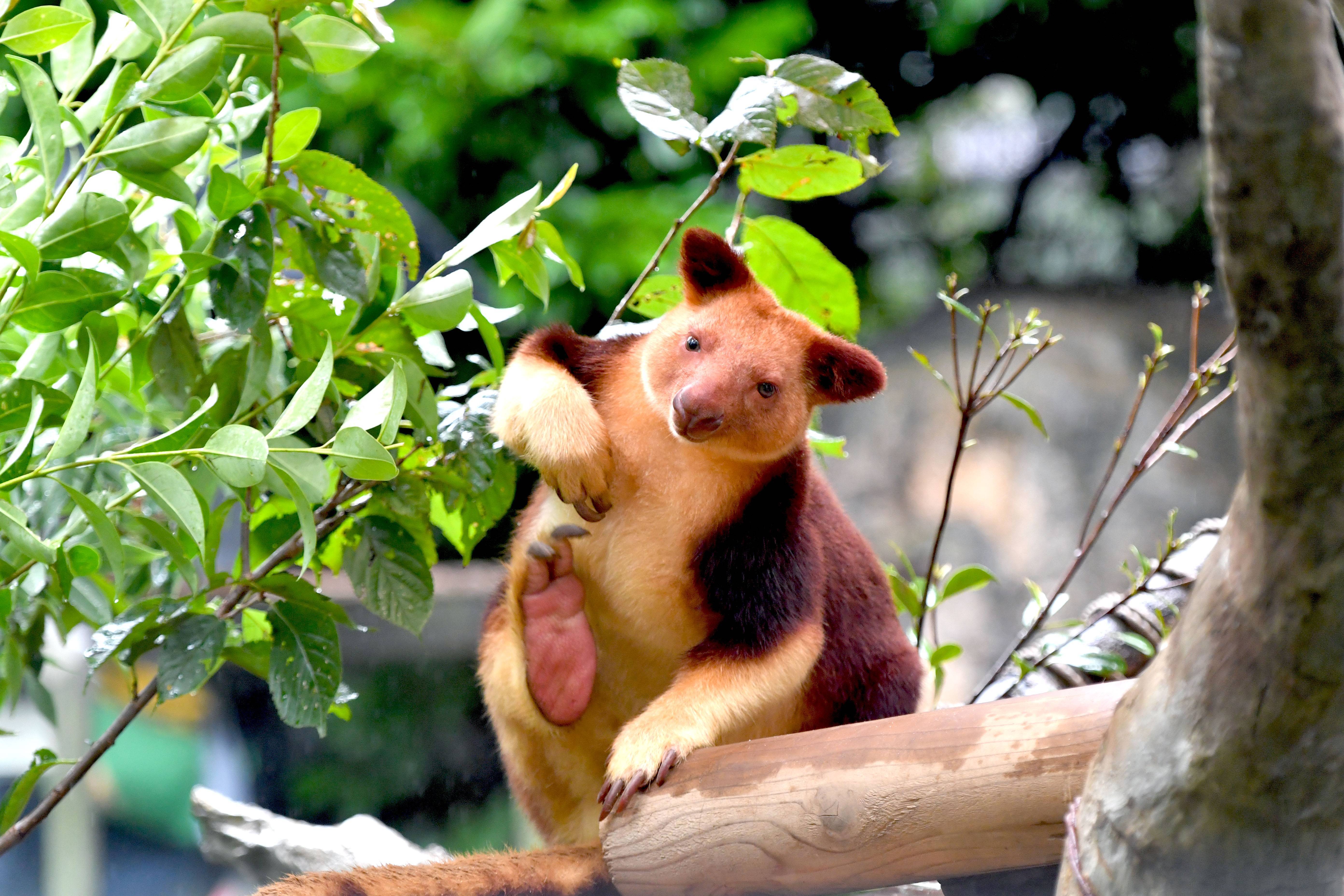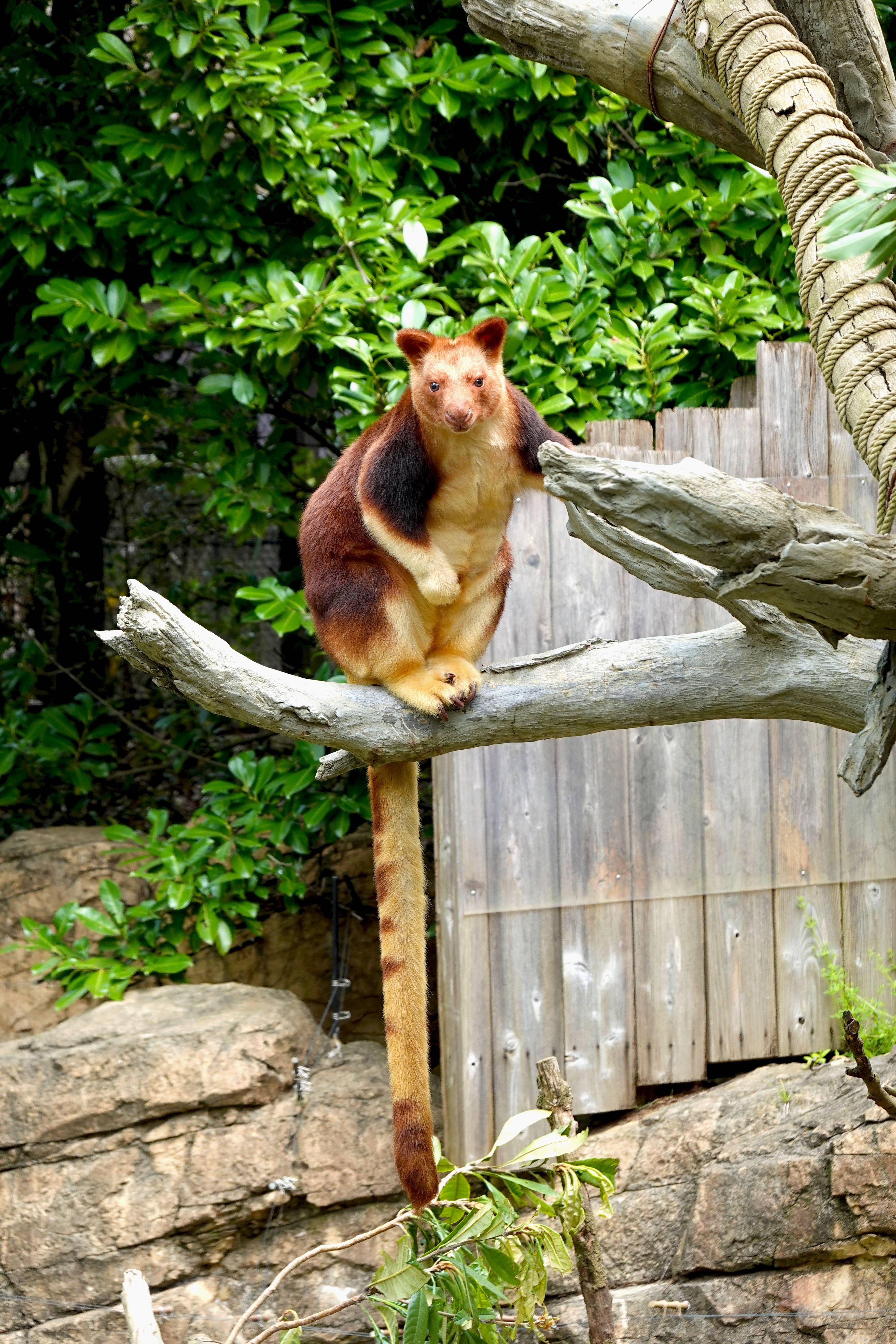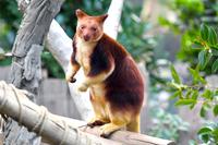 樹上での生活に適応し、前肢ががっしりし、後肢の発達が劣る。頑丈な前肢の爪で枝を握って木に登る。歩く時は後肢を交互に動かして前後に歩くことができ、他のカンガルー類ではできない。背筋に黄土色または淡い茶色の縦じまがあり、首と腰で特にはっきりしている。尾にはリング状の模様があり、その長い尾を使って、樹上でバランスを取っている。