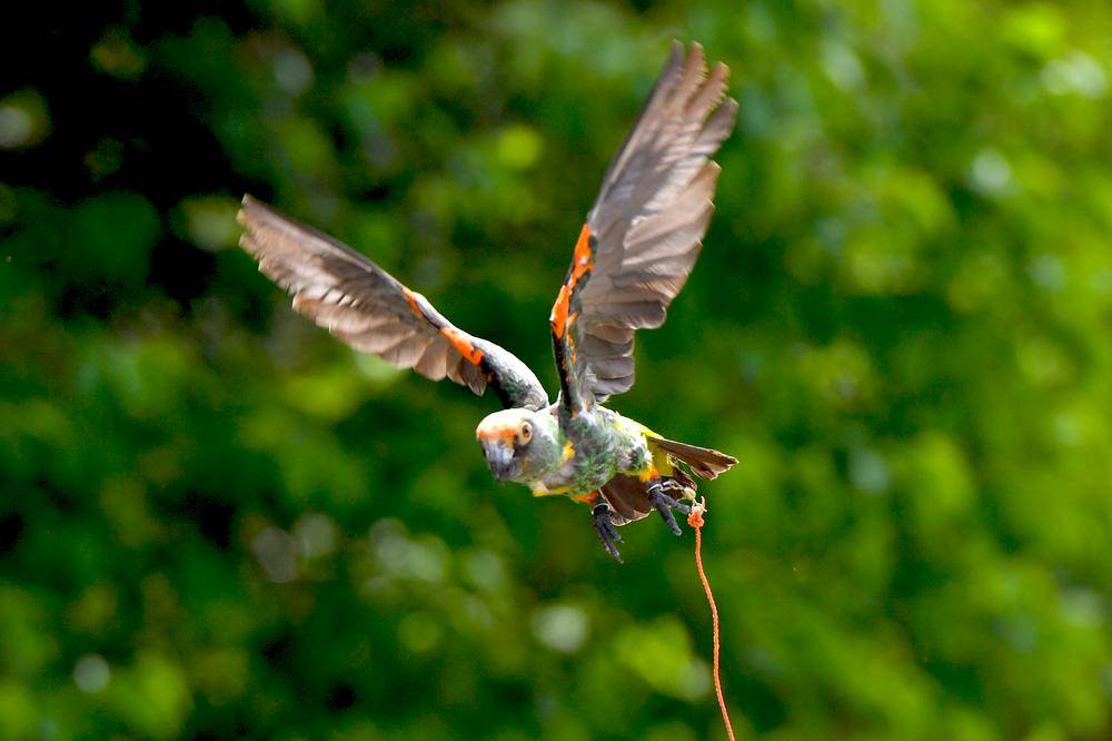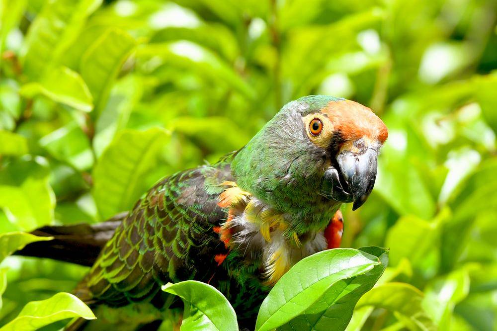 体全体は緑色だが、名前のとおり成鳥になると、頭部が赤色になることが特徴。尾羽が短く、翼が長いため飛行も得意。また、知能も高く、人の声の真似などもできると言われている。 ★ズーラシアでは「アフリカのサバンナ」ゾーンで開催のバードショーに登場。 -