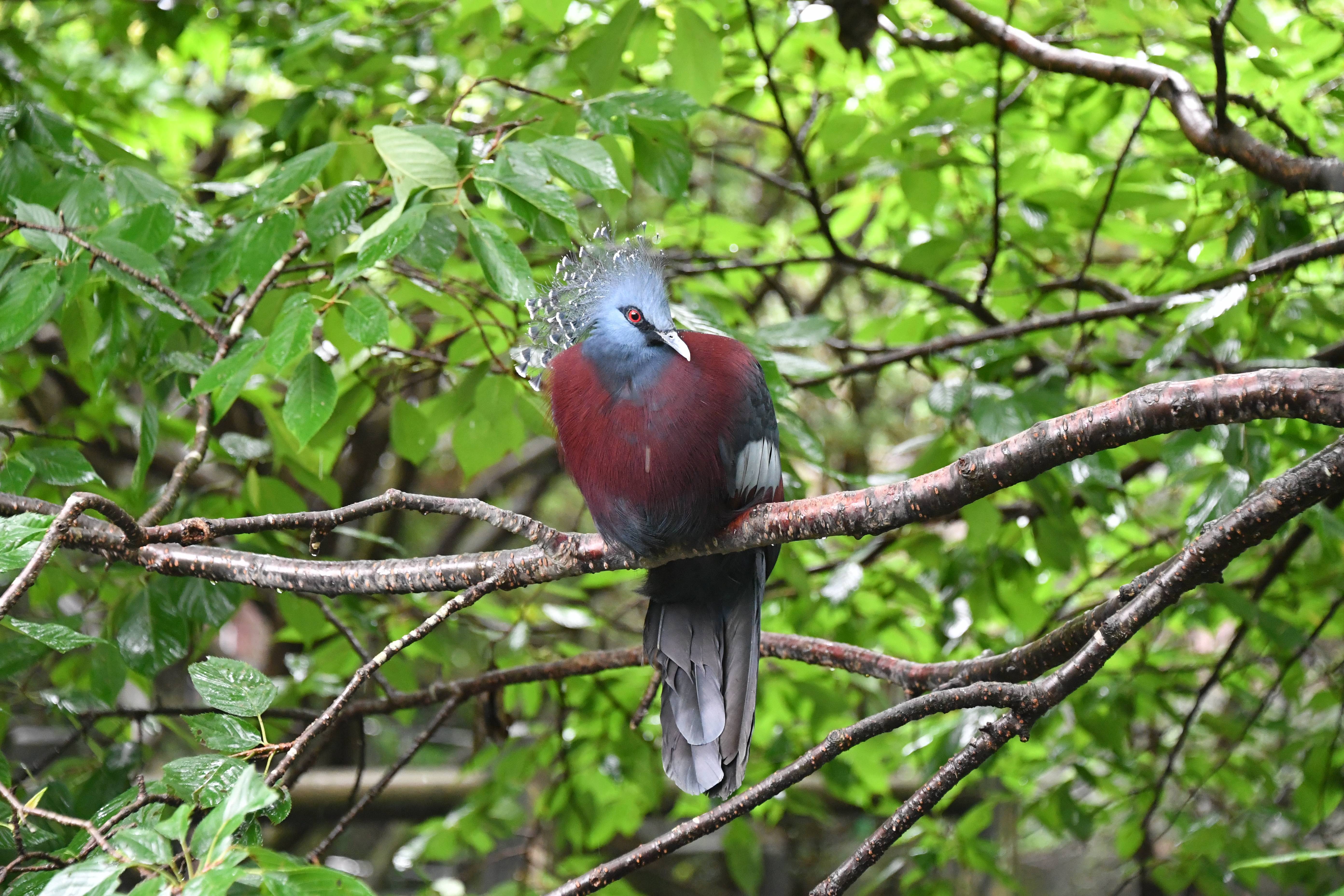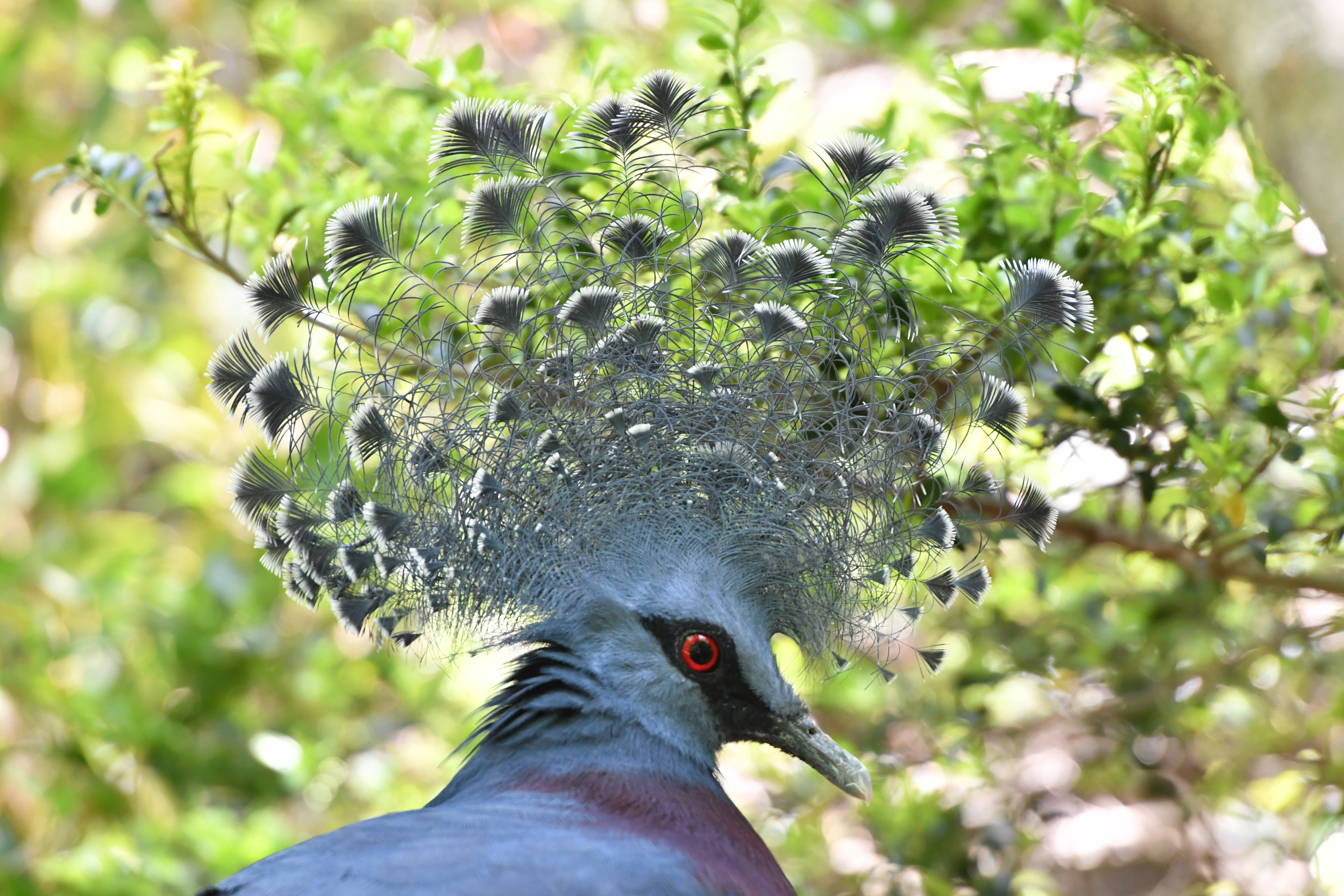低地の熱帯雨林や湿地帯に棲み、小さな群れをつくって地上に落ちた果実や種子などを食べている。外敵などが近づくと木の上に逃れるが、飛ぶ力は弱く、長距離は飛べない。繁殖期には樹上に枯れ枝を集めた粗雑な皿状の巣を作り、雌雄で子育てを行う。ハト類の中では最大の種。国の法律で捕獲が禁止されているにもかかわらず狩猟が行われており、また生息地の分断などによって生息数が減少している。