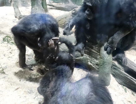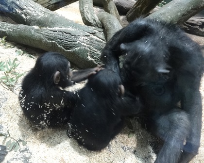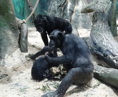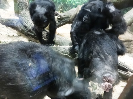 雨でも元気なチンパンジーに会いに来てくださいね♪