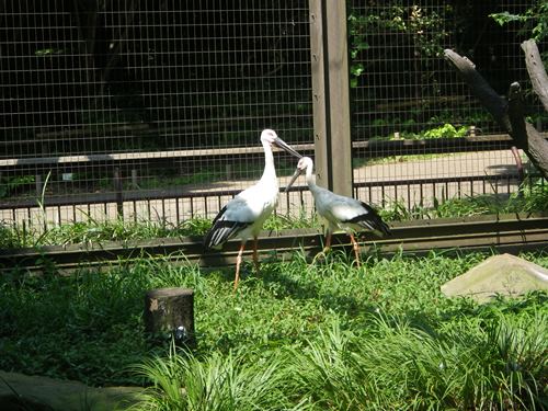 コウノトリの展示場にもまだまだ羽が落ちています。