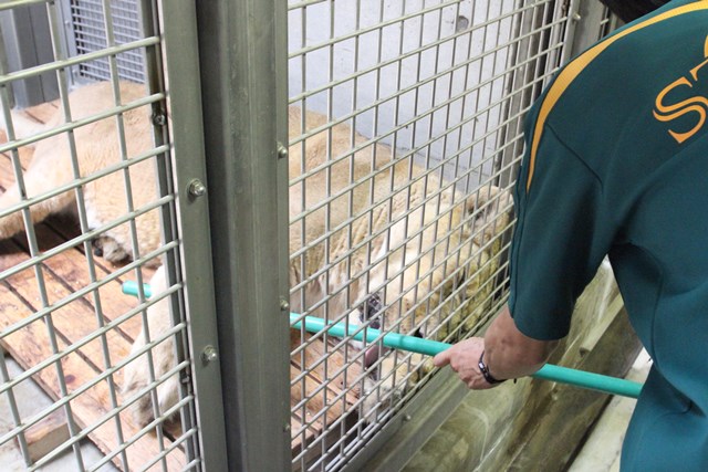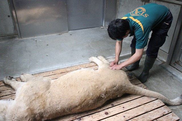 猛獣ですから、麻酔が効いているかの確認は重要です。