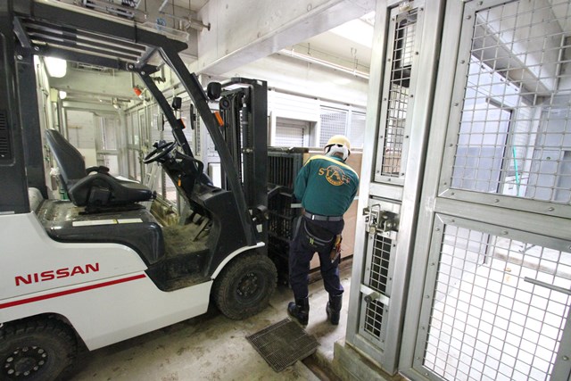 文明の力、フォークリフトが登場し、落ちないように固定します。