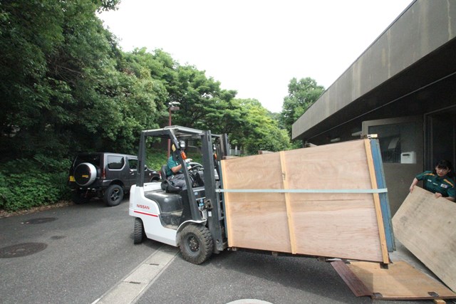 フォークリフトで運び、下駄を履かせて置いたのですが、その後その設置位置が微妙に悪いことに気づきました((+_+))