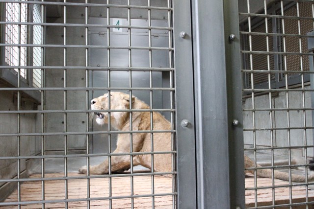 住み慣れたトラ舎を後にし、ライオン舎へ・・・