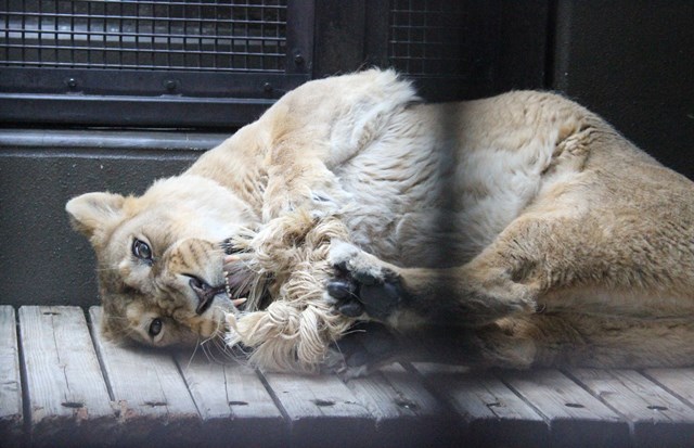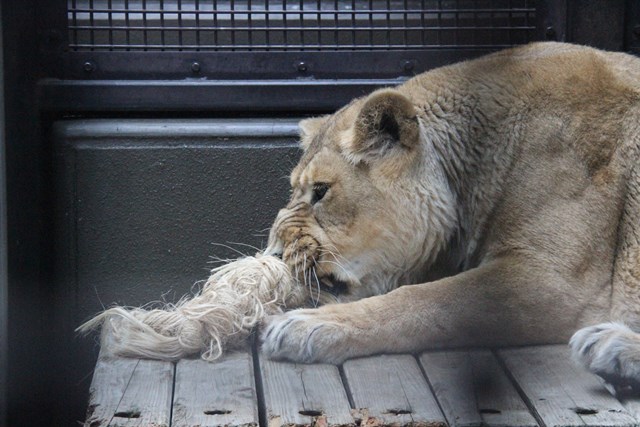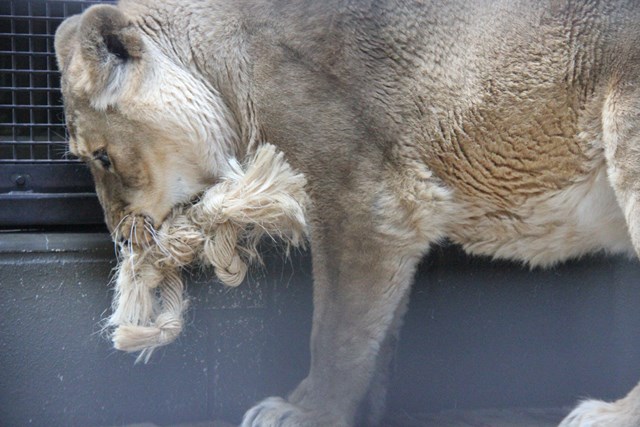 ライオンに、このように遊ばれてもロープはなかなか切れません。